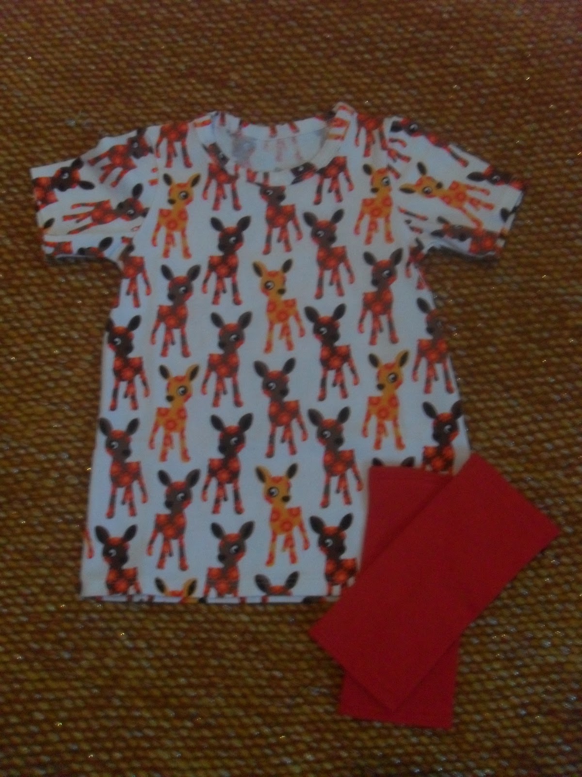 Tosiaan pyysin pieniä asiakkaita jonkin aikaa sitten. Niitä on onneksi tarjolla, että pääsee toteuttamaan näitä kehittyviä ideoita. Tässä esittelyssä tunika, jonka lähtökohtana oli kaksi vuotias suloinen pikkutyttö. Ja joka taisi ihastua titiMadamin bambi -koruuni. Metsolan kankaista löytyi sitten tällainen helmi, josta ompelin monikäyttöisen arkitunikan. Mekko sai tyyliinsä sopivat trikoosäärystimet.